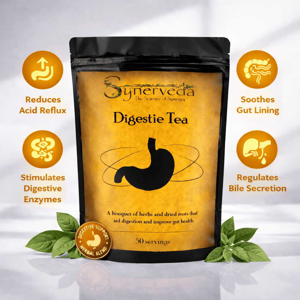 Ginger supports digestion by promoting gut motility and stimulating digestive enzymes, which helps with faster food transit, relieving gas and bloating.