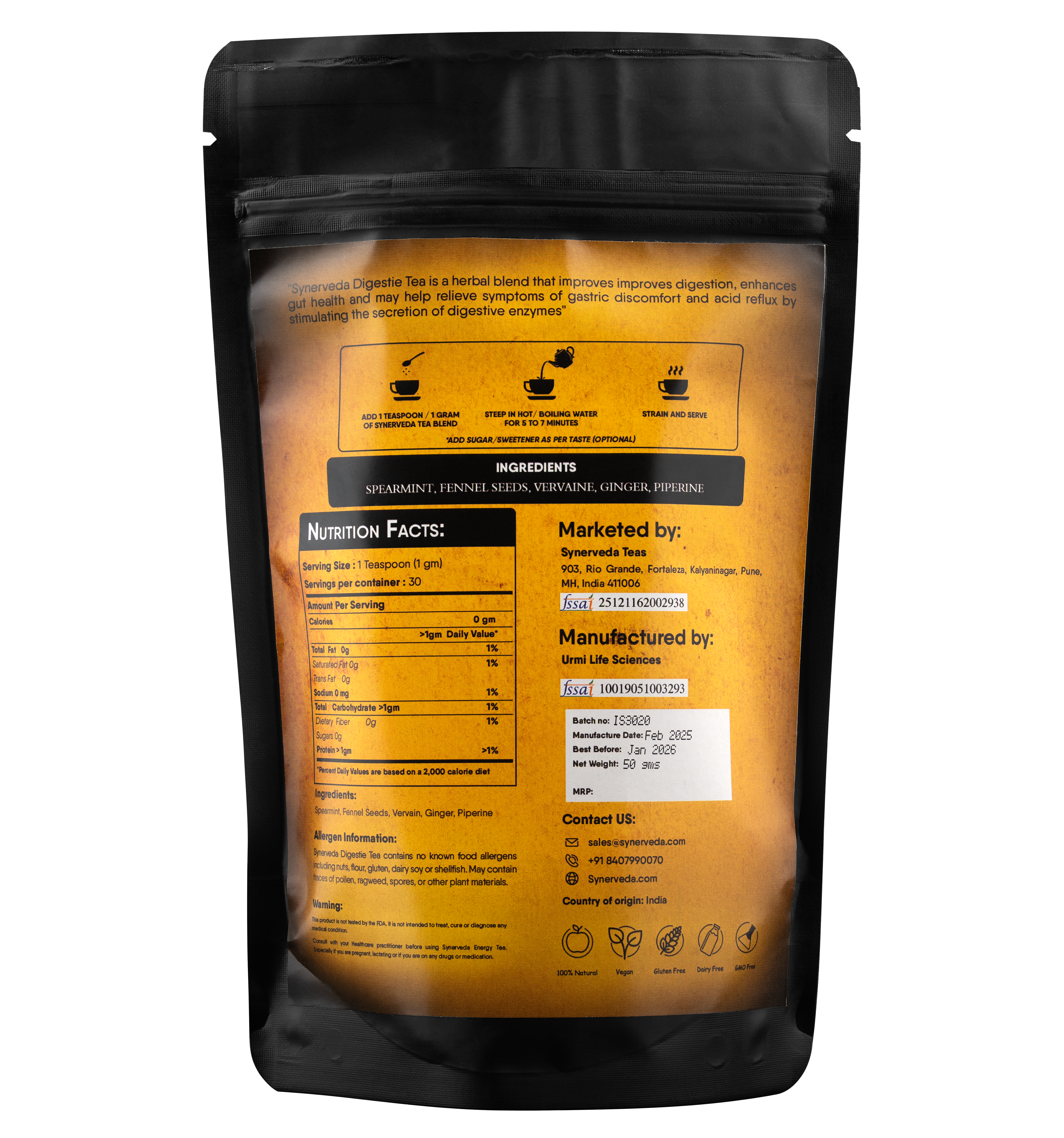 Vervaine, primarily a European herb, through its bitter taste and mild calming properties is believed to stimulate digestive function and relax the gastrointestinal tract.