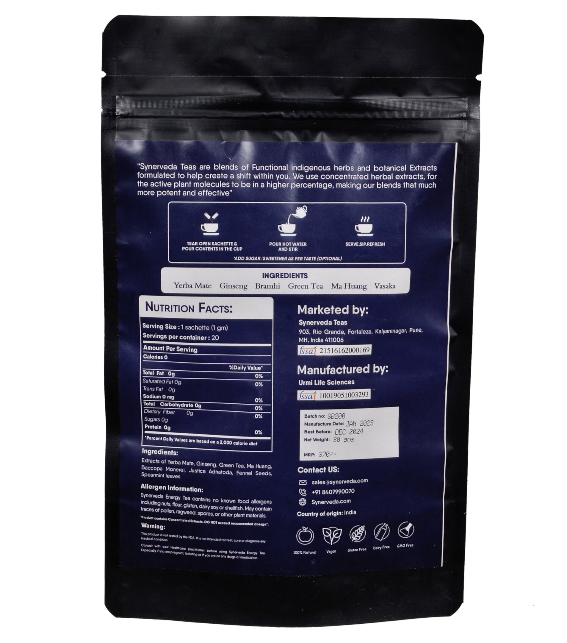 Vasaka or Malabar Nut tree leaves open up respiratory airways, allowing you to breathe deeper, inhale more oxygen, helping you stay energized and focused.