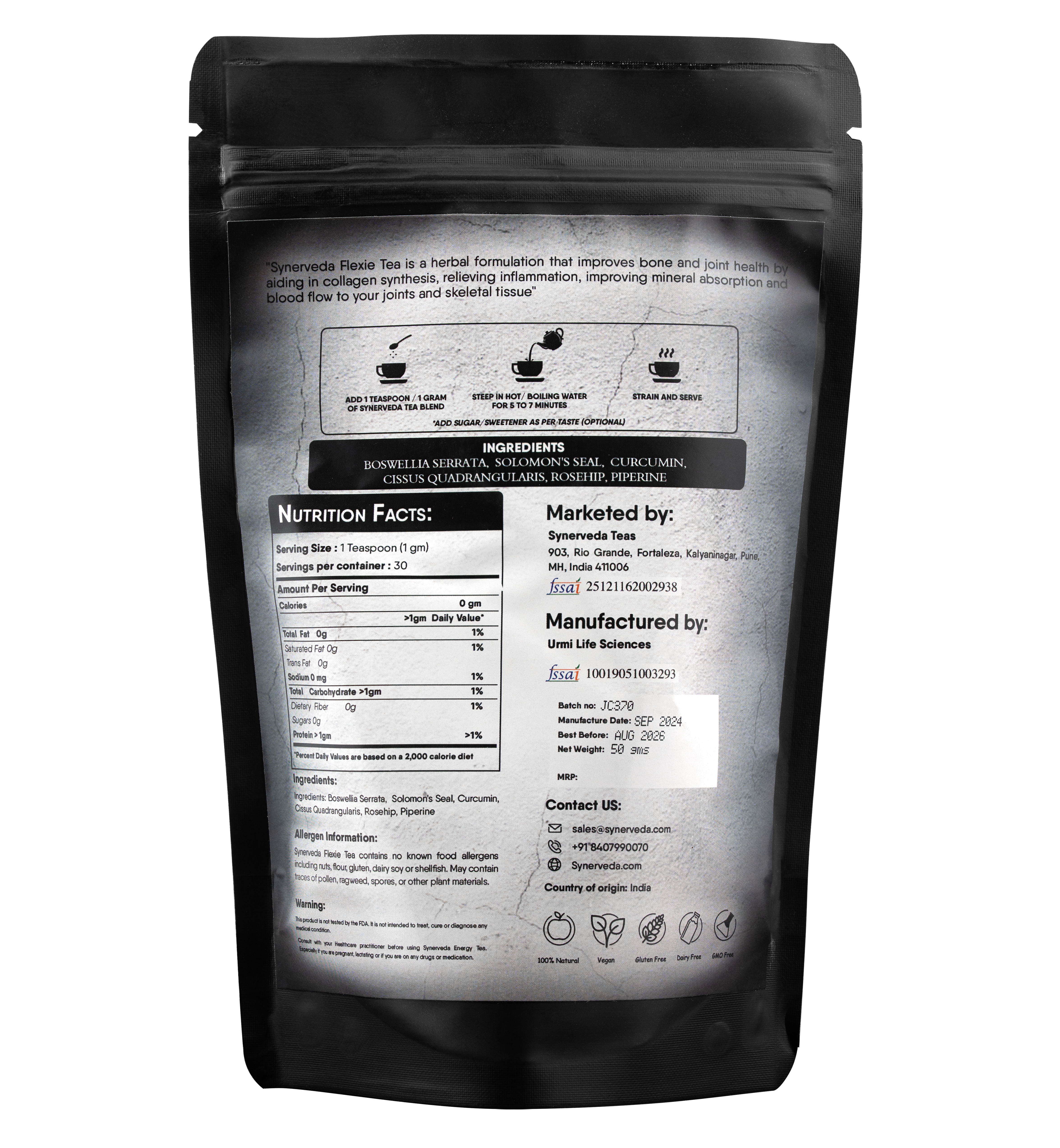 Solomon’s Seal improves the production of synovial fluid, thus moistening connective tissues to give it the ability to stretch or tighten itself in order to restore itself to its original prime form.